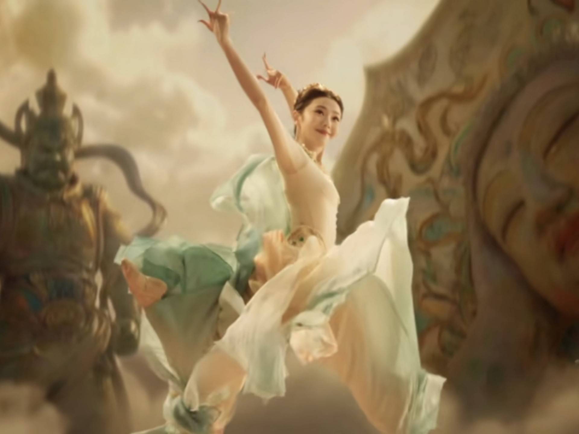 该节目以敦煌石窟为背景,通过科技与艺术融合再现“天衣飞扬,满壁风动”的古典气韵。刘浩存的舞蹈与曼妙身姿,彰显不俗的功底。